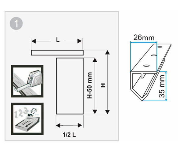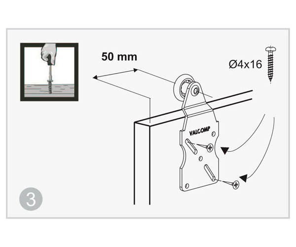 Полный комплект для установки подвесной двери, шириной до 600мм и весом до 45 кг.