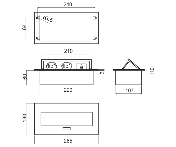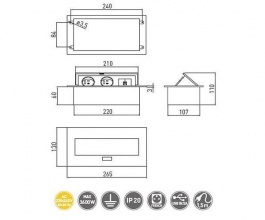 врезной, прямоугольное отверстие 220 × 107 мм |