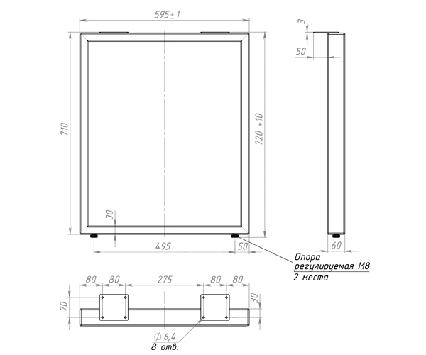 Габариты опоры (ВхШ), мм