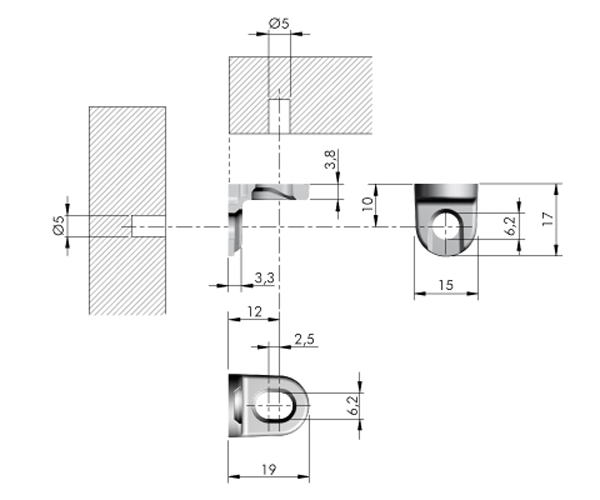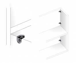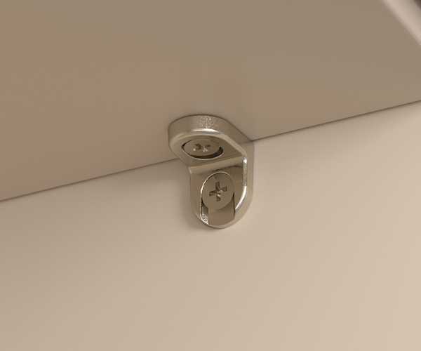 Стягивающий уголок создан для обеспечения бесшовного и надежного соединения панелей. Благодаря специально разработанному сечению отверстий, в зависимости от предполагаемого использования, можно без особых усилий закрепить полку или соединить боковину с задней стенкой, вкрутив два евровинта с плоскими потайными головками (головка Ø 7,7 мм).