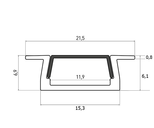 LED алюминиевый профиль врезной 22х7, 2 м.п., серебро ByLED