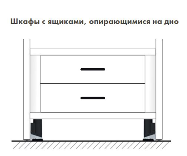 • используется для шкафов с высокой нагрузкой на дно, шкафов с ящиками, опирающимися на дно
