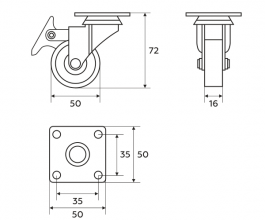 | Артикул | Код товара | Тип крепления | Наличие стопора | Цвет | Нагрузка, кг | Диаметр колеса, мм |