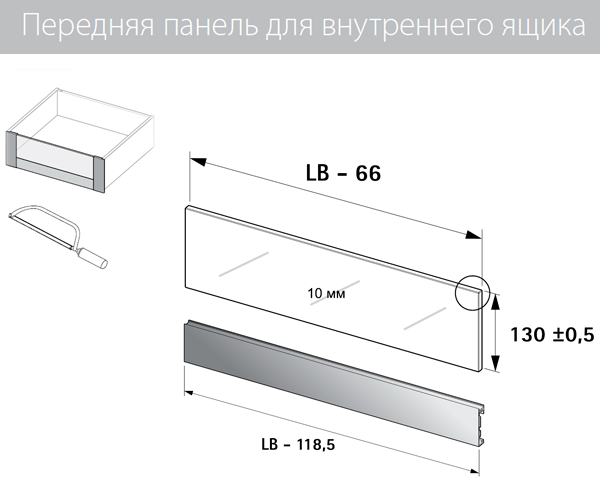 Рекомендация для выдвижного ящика (высота фасада 150 мм) |